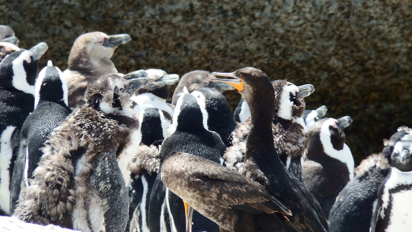 A kormoránok körülöttük napoznak , de ők jókat halaszgatnak, szinte bosszantván a Pingvineket...nem is értem, miért nem mennek odébb ?.